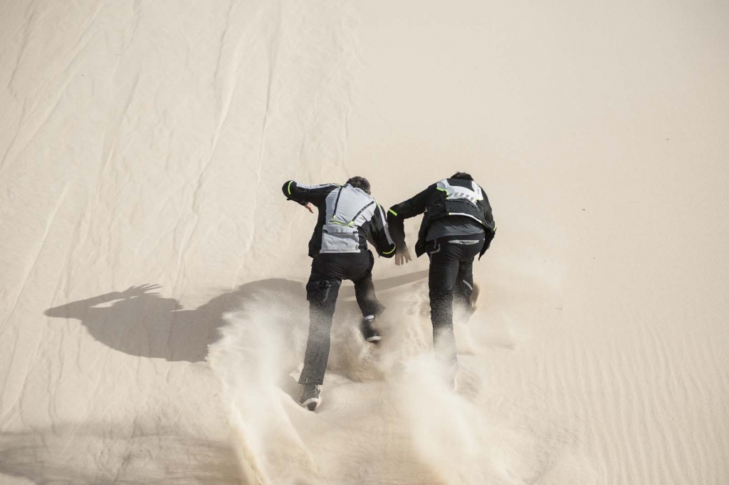Кроме того, большинство моделей изготовители оснащают незаметной для глаза ударопрочной пластиной для защиты пальцев ноги при ударе и пластиковой накладкой для пятки. Удлинённое голенище ботинка оберегает голень райдера от прямого контакта с горячими трубами выхлопа, ссадин и ожогов. Для подгона под обхват ноги предусмотрены липучки, пряжки или ремешки.