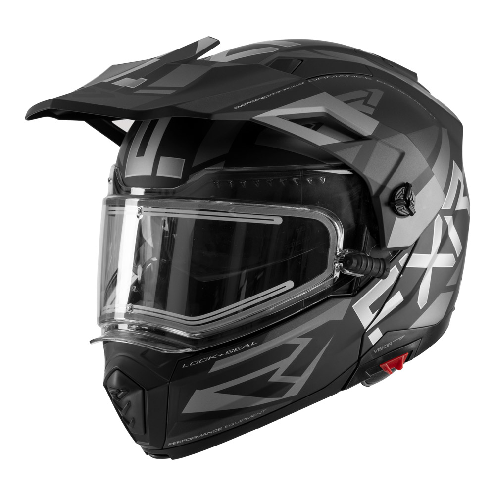 - Съемный регулируемый козырек увеличенного размера, ударопрочная система фиксации подбородка из нержавеющей стали с новой направляющей Posi-Lock, интегрированная обновленная система съемной маски для дыхания